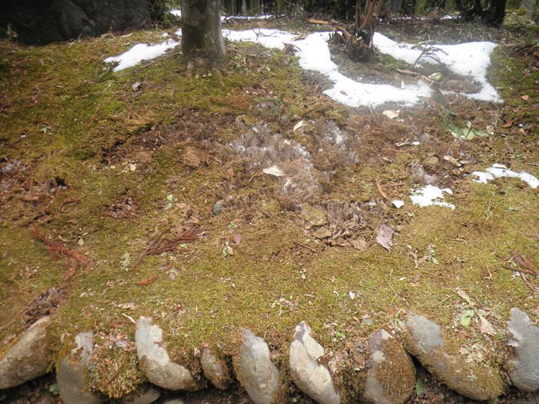 街道の途中に霜柱が立っていました。