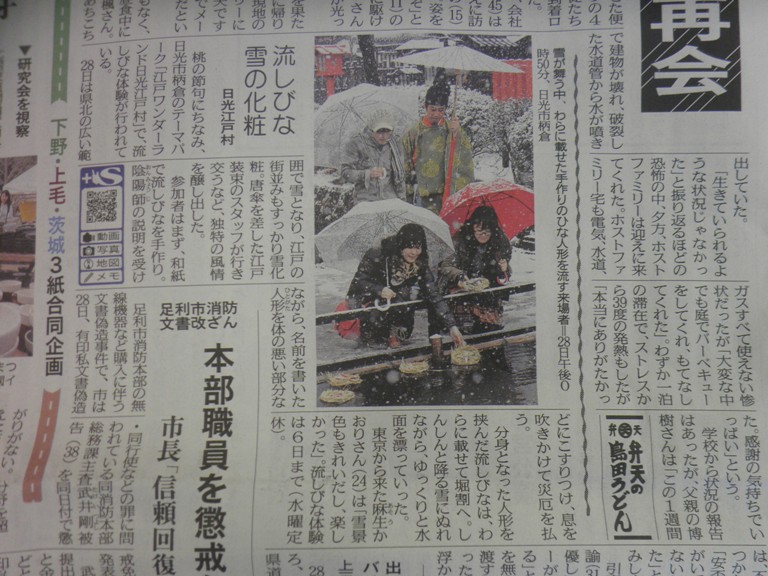 3/1「流し雛イベントが下野新聞の記事に載りました」