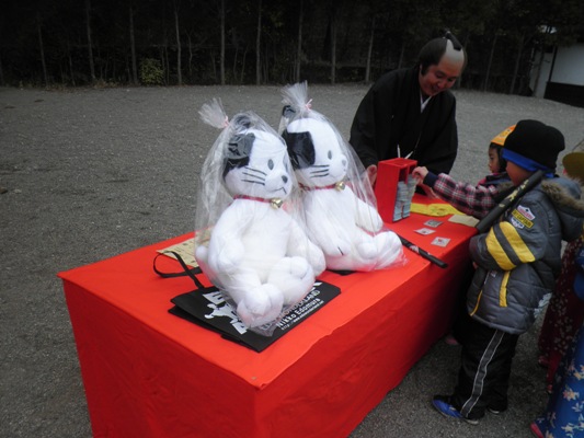 なんと大きな「ニャンまげ」のぬいぐるみが当たるんです。