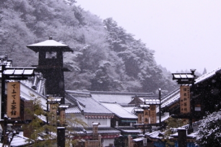 「江戸ワンダーランド日光江戸村」の雪景色は、