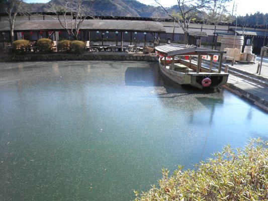 お堀に張った氷の上に、