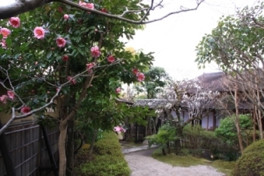 「黄金の茶室」の庭に咲く「椿」の知らせが、