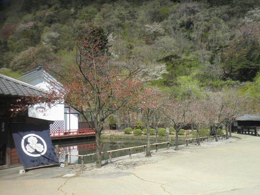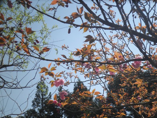 「北町奉行所」前のお堀沿いの「ヤエザクラ」は、