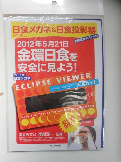 「金環日食」を観測するための「日食メガネ」つきの本が、