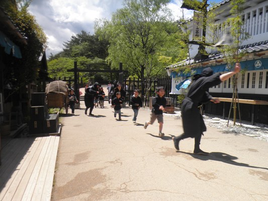 「忍者体験」と同数の「捕り方体験」のちびっ子さんたちも、