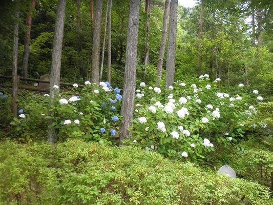 村内の街道沿いに咲く「アジサイ」が、