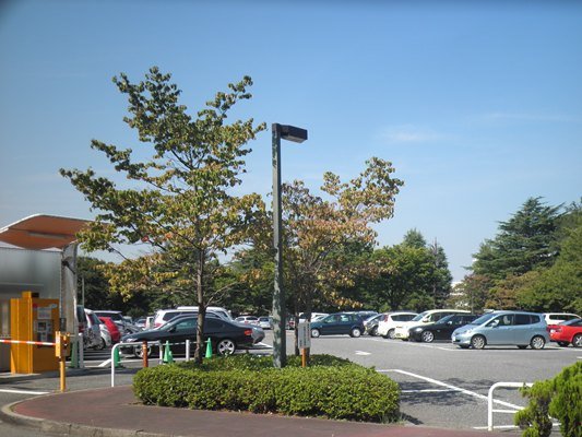 駐車場沿いに植えられている「ハナミズキ」は、