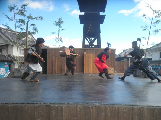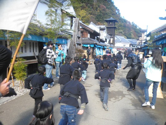 「捕物体験」と「忍者体験」の様子です。