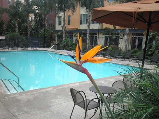 プールの周りをぐるっと回って、