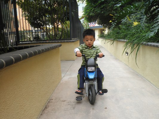 まずはお気に入りの三輪車に乗ってお出掛です。