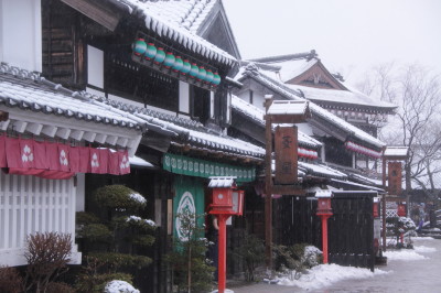 雪景色の江戸村はとても綺麗ですね!一度でいいから雪の降る日に行ってみたいものです