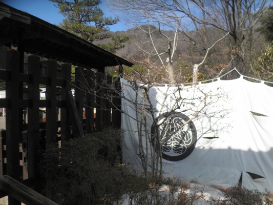 「関所」の「冠木門」の裏側の「ロウバイ」です。
