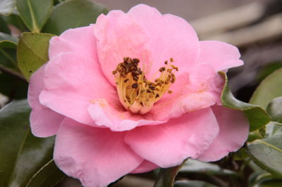 「黄金の茶室」の出口の「椿」と、