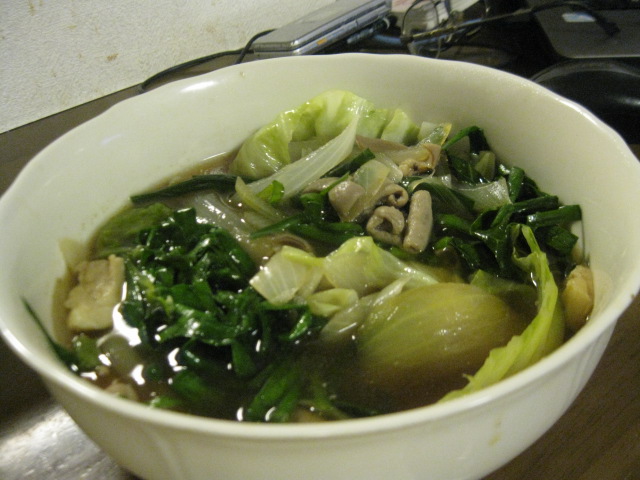 ニラにキャベツにたまねぎ、もつ沢山、鶏肉少々、