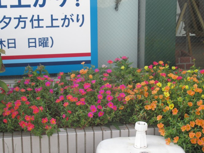 木更津工場の正面玄関わきに綺麗に咲いているマツバボタン、