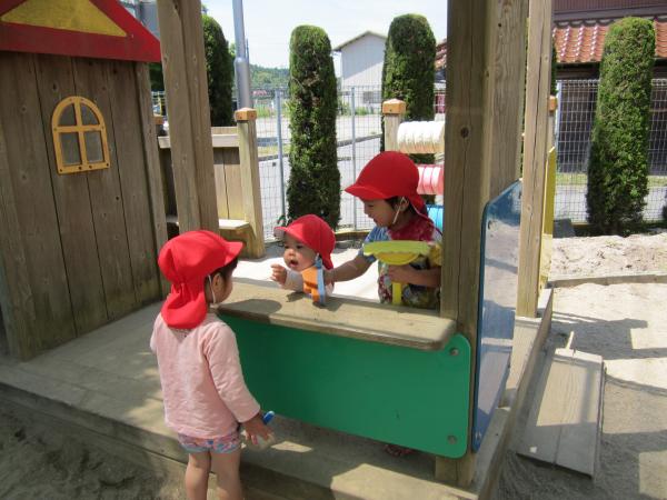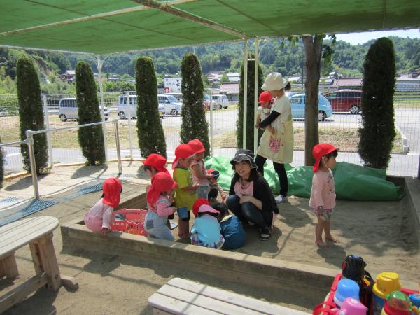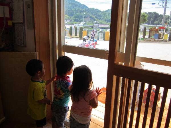 あか2組もお部屋のなかから、リレーの練習をしているおにいちゃんおねえちゃんたちを