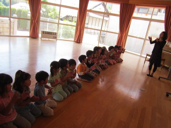 先生の話や説明を聞いて、体を動かしたり、リズム打ちをしたりしました!