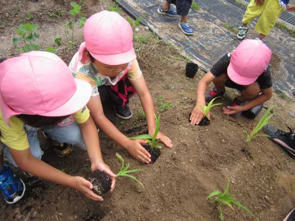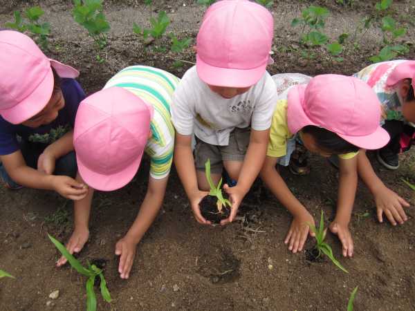 先日、志和中学校でいただいたトウモロコシの苗を植えました!