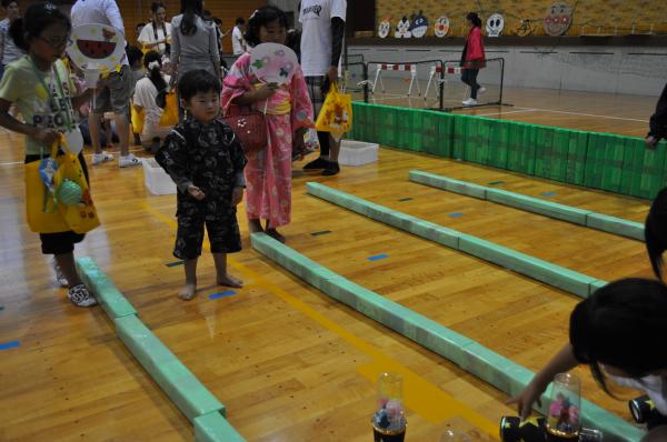 ボーリング、的当て、ヨーヨー釣り子どもたちの好きなゲームを職員手作りでおもてなしです