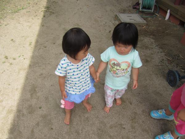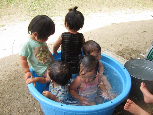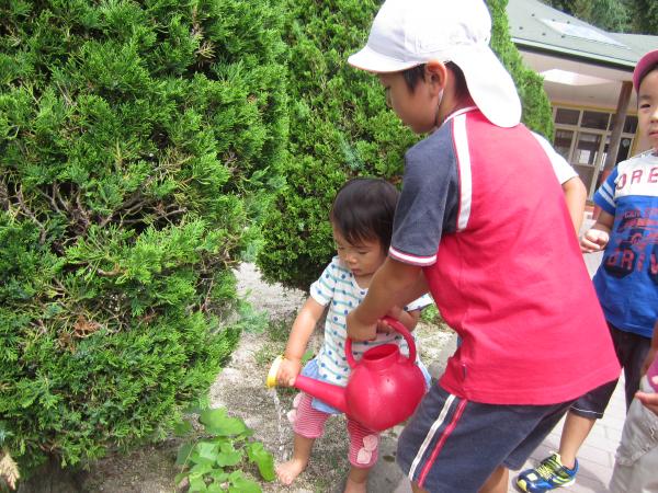 一生懸命重いじょうろを運んでいる姿をみて、年長児、年中児のおにいさん、おねえさんがお手伝いに来てくれました