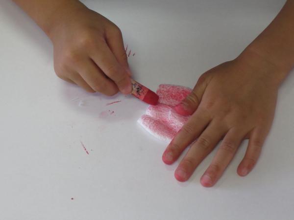 ハイタッチ(発泡緩衝材)を使って、ていねいに色を塗って作りました。