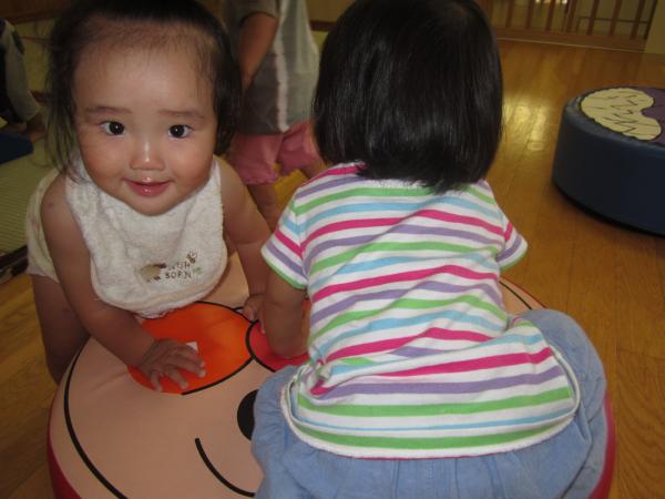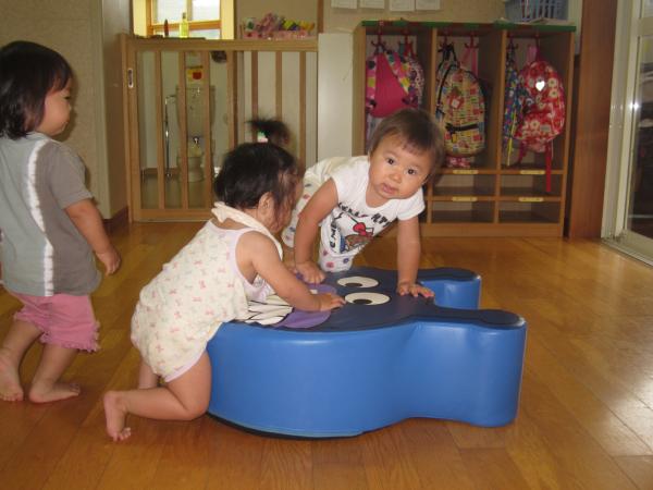 0歳児さんも嬉しそうに1歳児さんの真似をして登っています