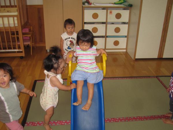 滑り台は「じゅんばんよ」といいながら階段に並ぶ姿もみられます!