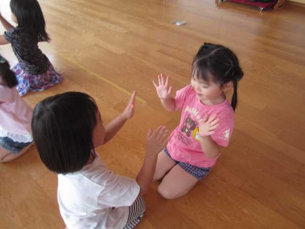 友だちと2人組になってリズムをたたいたり