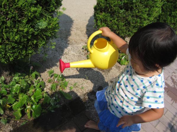 じょうろは少し重いけど先生に「お手てパーにしてもつんよ」とコツを伝えると上手に運んでくれました!!