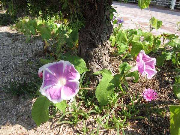 その後は暑い中でも元気に咲いているあさがおのお水をあげました