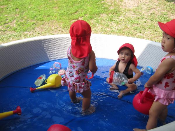 しっかり働いて汗をかいたあとは楽しいプール遊びです