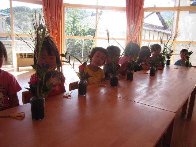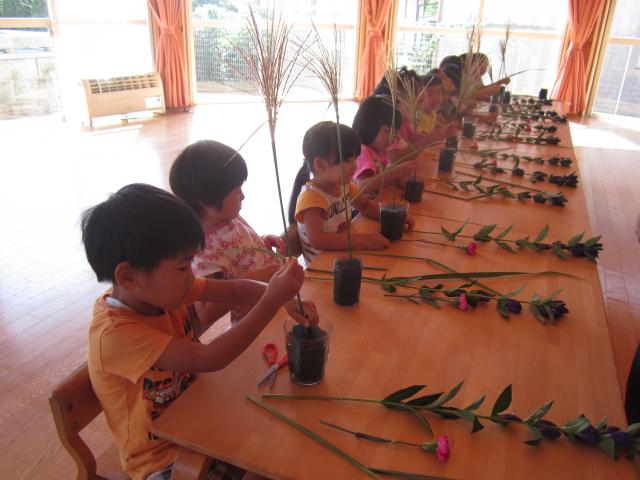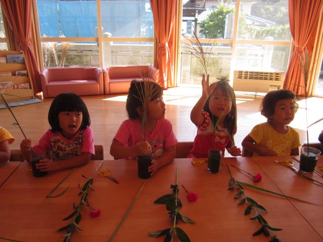 「このお花、かわいいね」「ススキ、気をつけないと手が切れるよ」と花への興味をもって取り組んでいます。