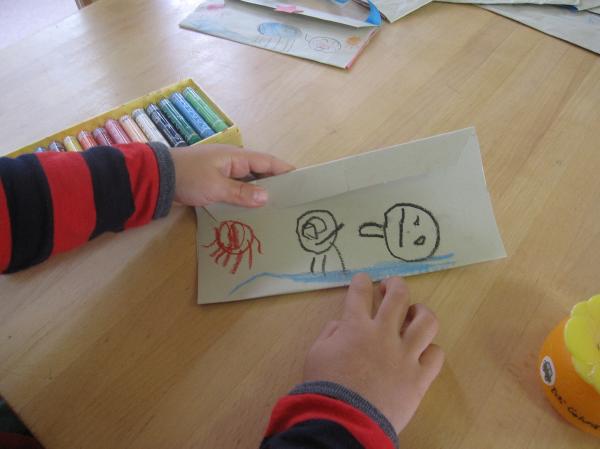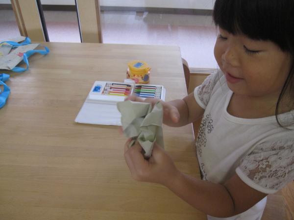 あおぐみさんはとっても楽しみに、お金を入れる財布を作りました。