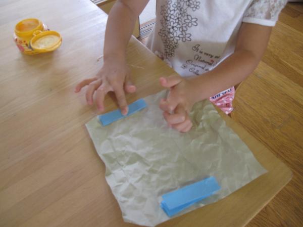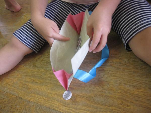 そして、折り紙を折ってよく開くようにしかけをつくります。