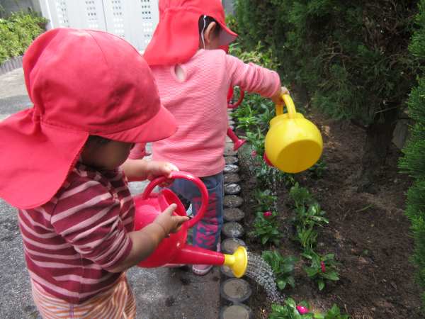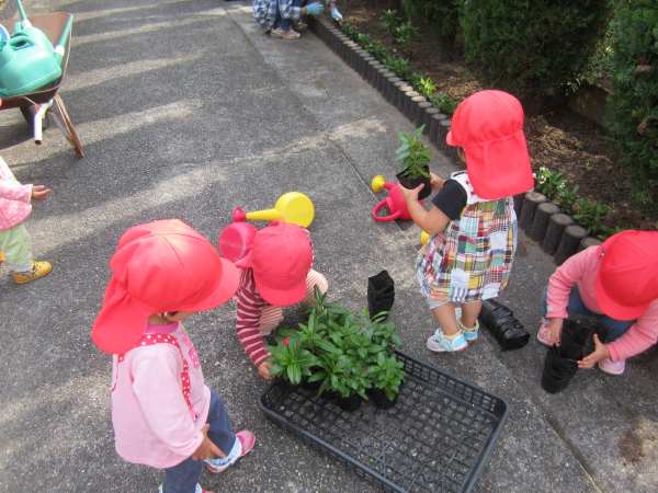 今日は主任の上釜先生の花植えのお手伝いをあか1くみさんがさせてもらいました