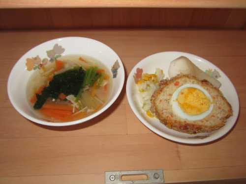 みんな大好きスコッチエッグとジュリエンヌスープでした!!
