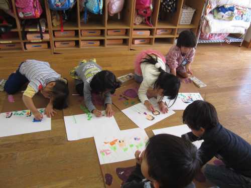 それをのりで貼った後、いもからつるを伸ばして描画活動を楽しみました。