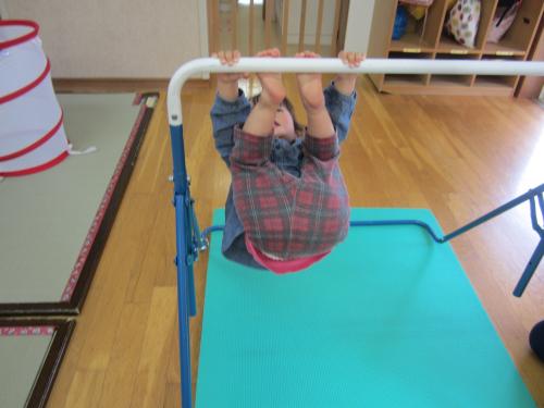今日は室内で、鉄棒にぶら下がったり、トンネルをくぐり、