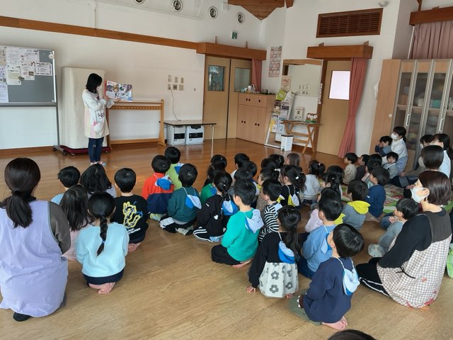 絵本を見ながら地震が起きた時に机の下に入ることや頭を守ることなどみんなで確認しました。