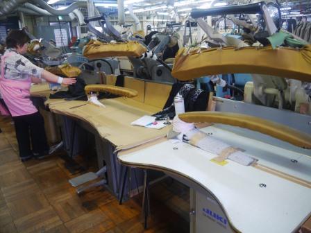 この工場はとても広くてスタッフの数も多い。裁断縫製の場所にはたくさん