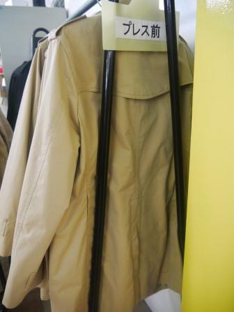 プレス前のコートは水洗い後のコートのようでシワシワ。