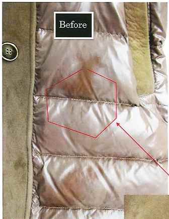 ダウン部分の前身頃のシミ二か所は何か油っぽい液体が