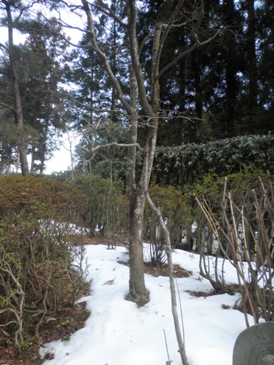 「関所」の入り口「冠木門」の裏側にある「蝋梅」から。