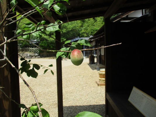 「梅」の古木になった実と「てるてる坊主」の展示施設が、