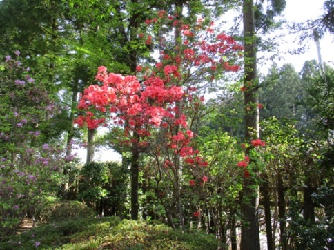 5〜6メートル先の左側で咲く「躑躅」です。