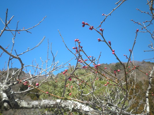 開花が待たれる「活動写真の里」の「梅」たちです。
