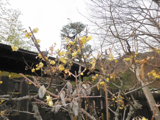 先週咲き出していた「関所」の「冠木門」裏の「ロウバイ」と、