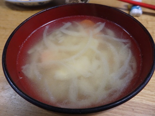 雪かきのあといつもの筋トレ後に頂いたお母さんの味噌汁。
