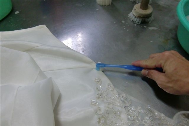 ドレスの洗いの作業工程です