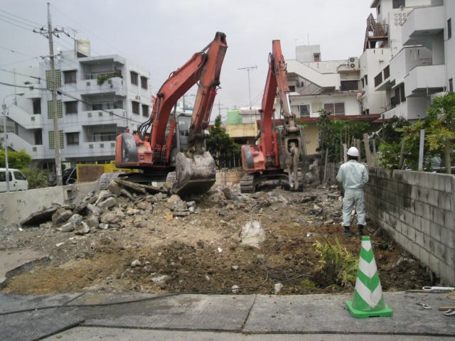 重機で細かく砕いたり